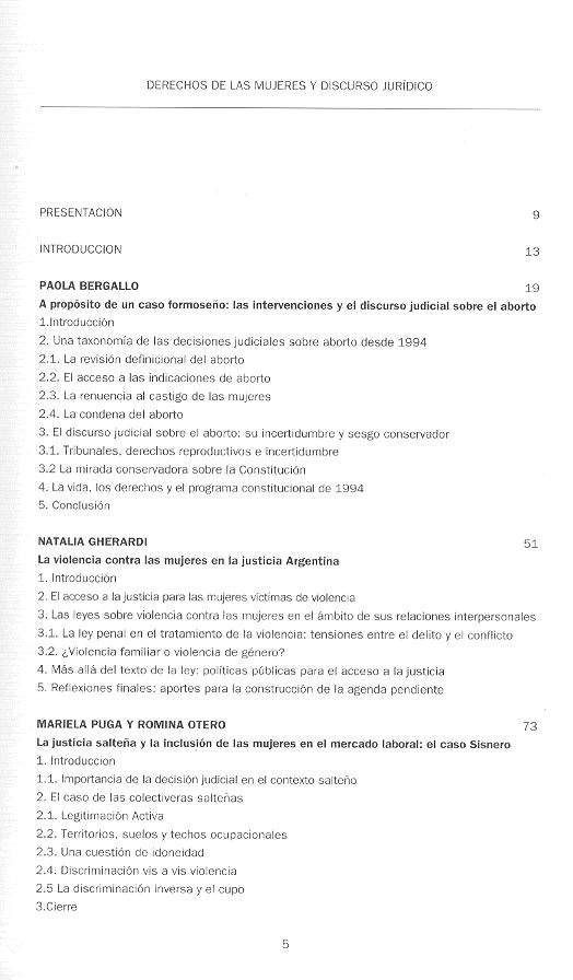 1. Derechos de la mujer (JURI) 2. DERECHOS DE LA MUJER (LE) 3. SENTENCIAS (LE) 4. Derechos humanos (JURI) 5. DERECHOS HUMANOS (LE) 6. INFORMES TÉCNICOS (LE) 7. DERECHOS DE LA MUJER - INFORMES (LE) 8. FORMOSA (ARGENTINA : PROVINCIA) (LE) 9. ABORTO (LE) 10. VIOLENCIA CONTRA LAS MUJERES (TM) 11. SALTA (ARGENTINA : PROVINCIA) (LE) 12. DISCRIMINACIÓN DE LA MUJER (SAIJ) 13. DISCRIMINACIÓN SEXUAL EN EL TRABAJO (LE) 14. MERCADO LABORAL (LE)