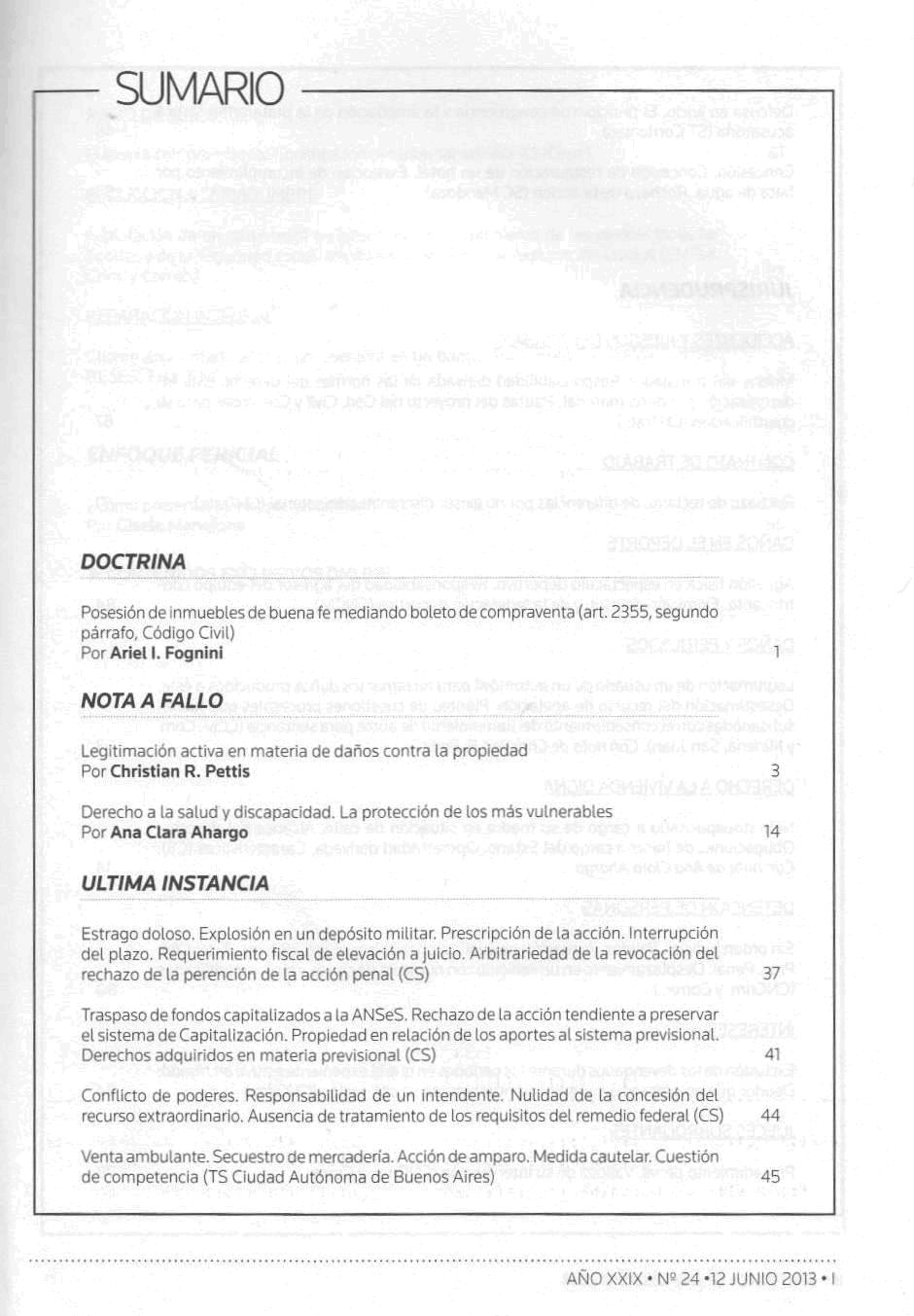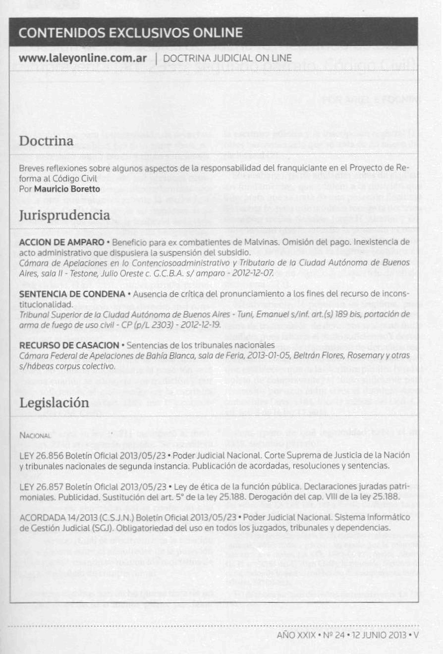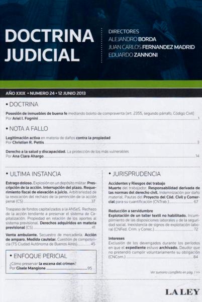 Doctrina judicial / Alejandro Borda ; Juan Carlos Fernández Madrid ; Eduardo A. Zannoni, directores ; Fulvio Germán Santarelli, subdirector. -- Año 29, no. 24 (jun. 2013). -- Buenos Aires : La Ley, impresión 2013. 104 p.; 24 cm.
