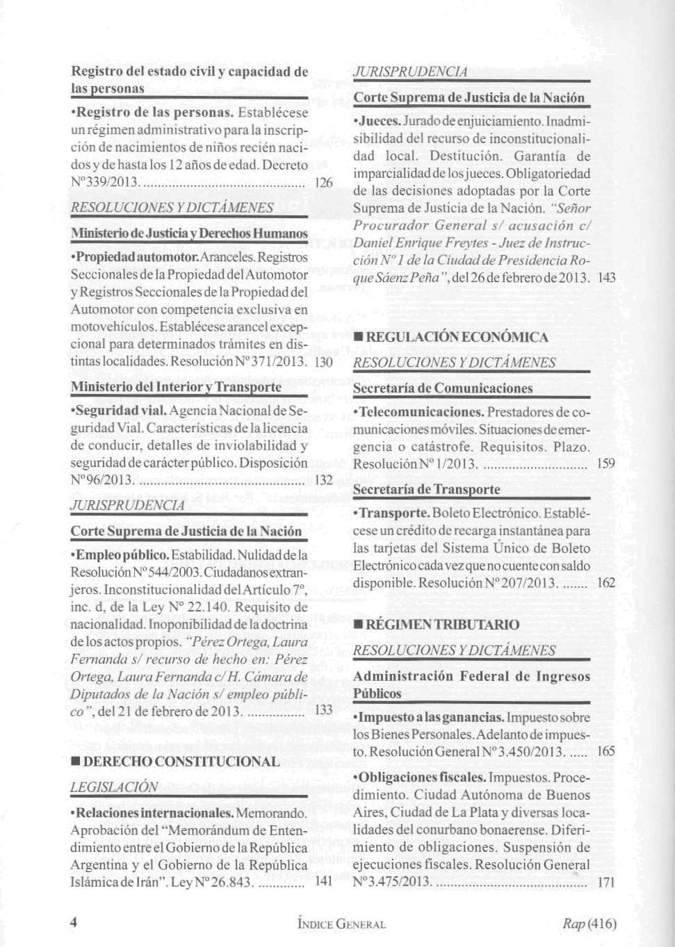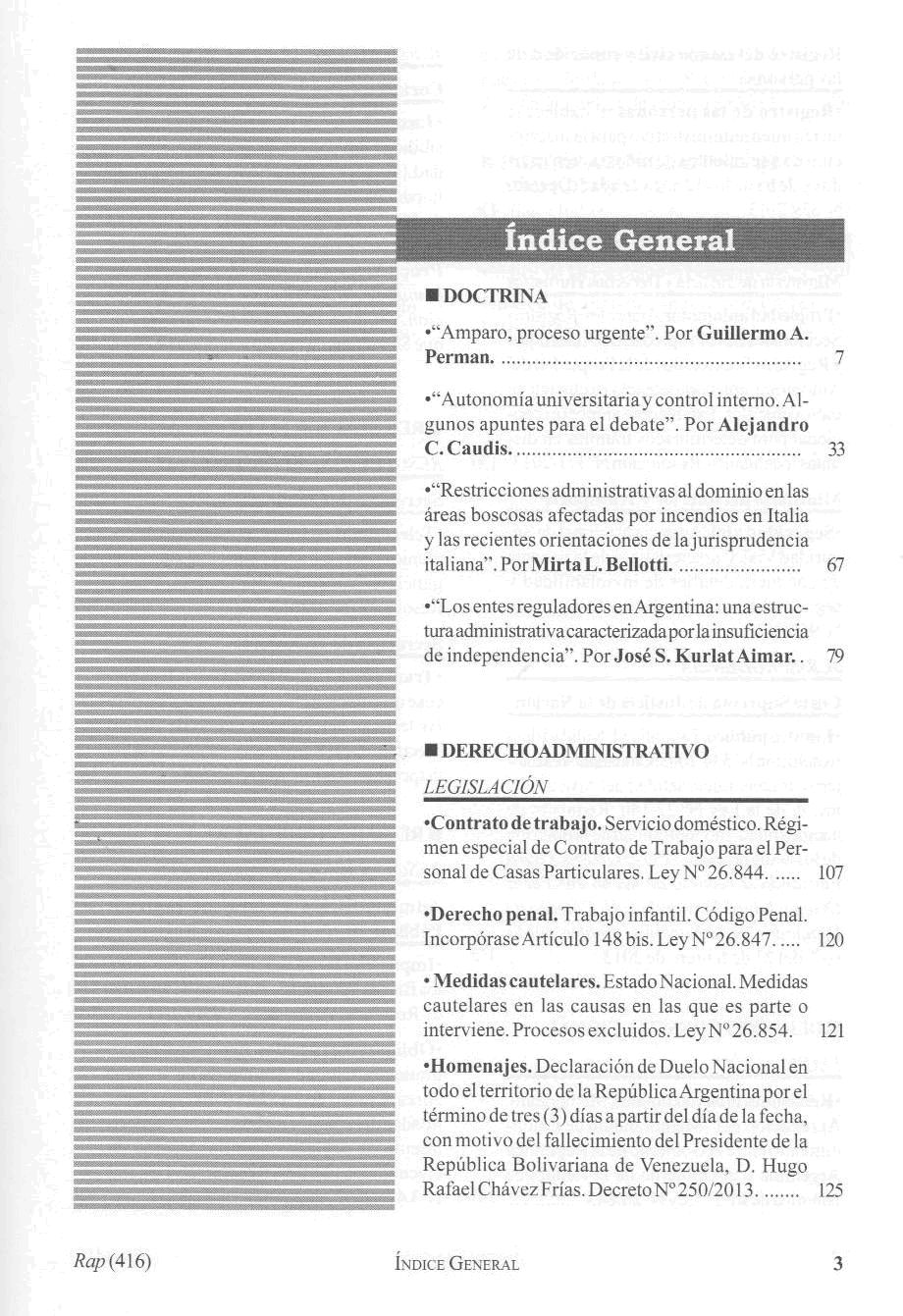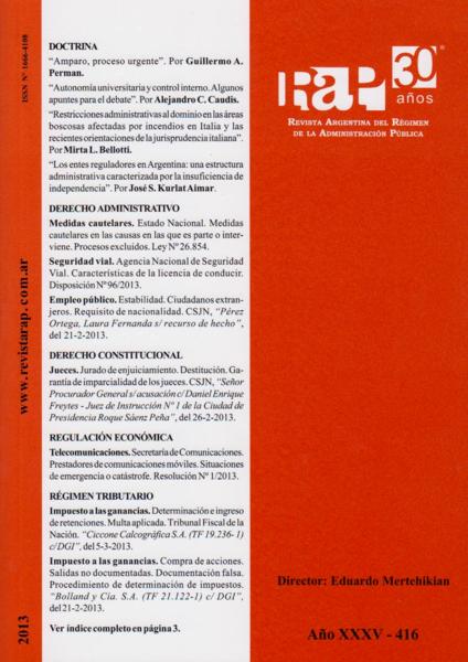 Revista Argentina del Régimen de la Administración Pública. -- Año 35, no. 416 (mayo 2013). -- Buenos Aires : RAP, impresión 2013. 205 p.; 24 cm. ISSN: 1666-4108