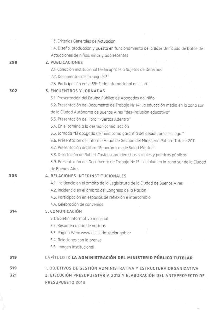 Buenos Aires (Argentina). Ministerio Público Tutelar Niñez, adolescencia y salud mental en la Ciudad de Buenos Aires: informe de gestión del Ministerio Público Tutelar 2012 / Ministerio Público Tutelar de la Ciudad Autónoma de Buenos Aires. -- 1a. ed. -- (2012). -- Buenos Aires : Eudeba ; Ministerio Público Tutelar, 2013. 332 p. : il.; 23 cm.