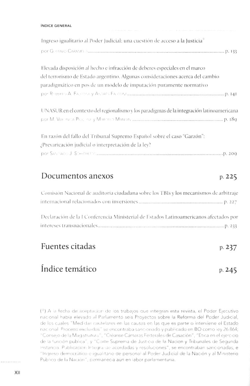 En tapa: [Democratización de la Justicia]. Incluye Índice de fuentes citadas e Índice temático. Publicación electrónica disponible en forma libre y gratuita en [www.infojus.gov.ar]. ISSN: 2250-7566