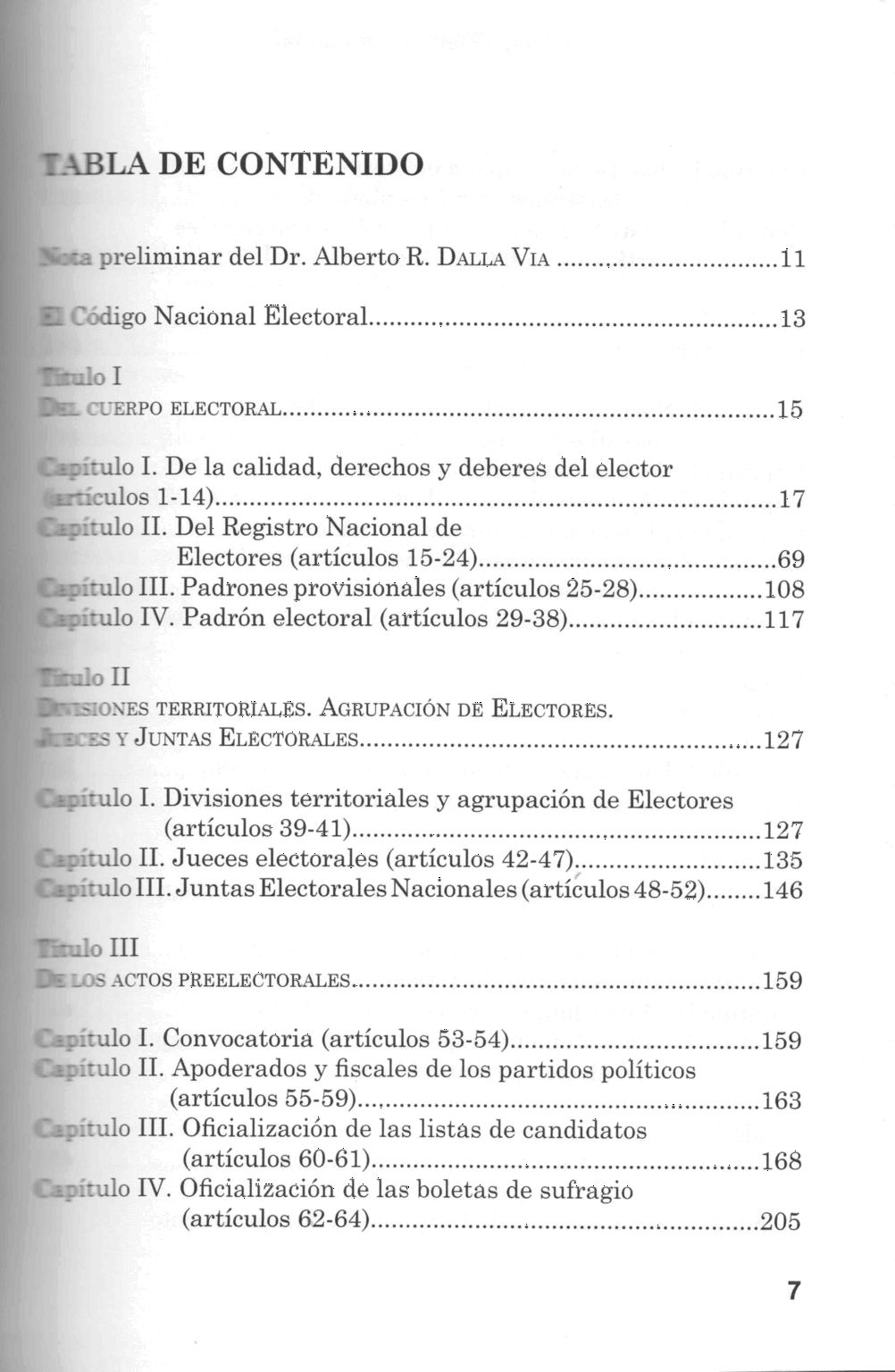 1. DERECHO ELECTORAL (SAIJ) 2. ELECCIONES - LEGISLACIÓN (LE) I. Dalla Via, Alberto Ricardo, prelim. II. Argentina