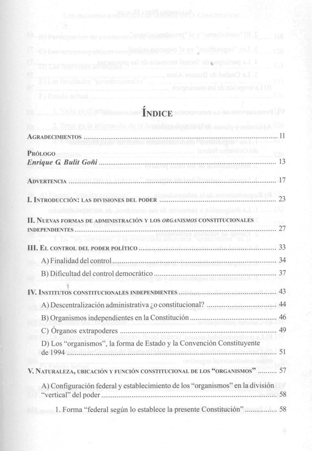 1. Administración pública (JURI) 2. CONTROL ESTATAL (SAIJ) 3. CONTROL DEL SECTOR PÚBLICO (SAIJ) 4. ORGANISMOS DE CONTROL INTERNO (SAIJ) 5. SERVICIOS PÚBLICOS (LE) 6. FEDERALISMO (LE) I. Bulit Goñi, Enrique G., pról.