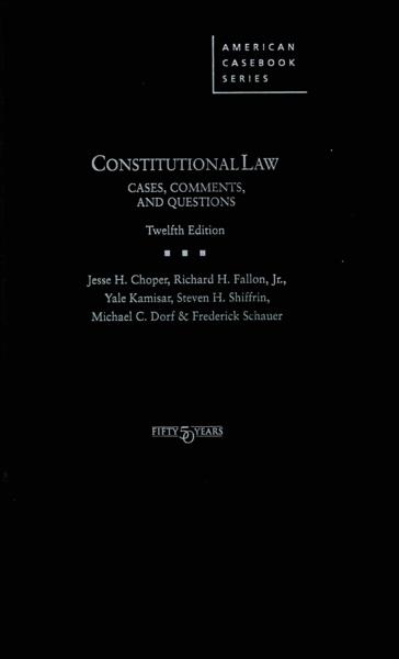 Constitutional law: cases, comments, and questions / by Jesse H. Choper... [et al.]. -- 12th. ed. -- Minnesota : West Academic Publishing, c2015. cxxi, 1838 p. : il.; 26 cm. -- (American casebook series)