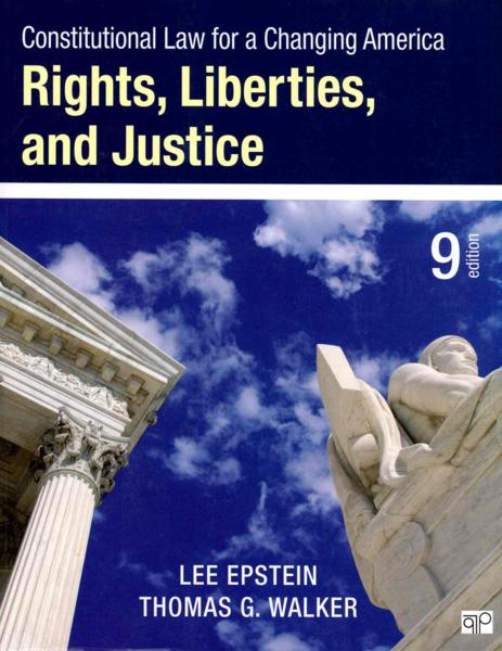 Epstein, Lee (1958-...) Constitutional law for a changing America: rights, liberties, and justice / Lee Epstein (1958-...) ; Thomas G. Walker (1945-...). -- 9th. ed. -- Washington, DC : CQ Press ; SAGE, c2016. xvii, 830 p. : il.; 26 cm.
