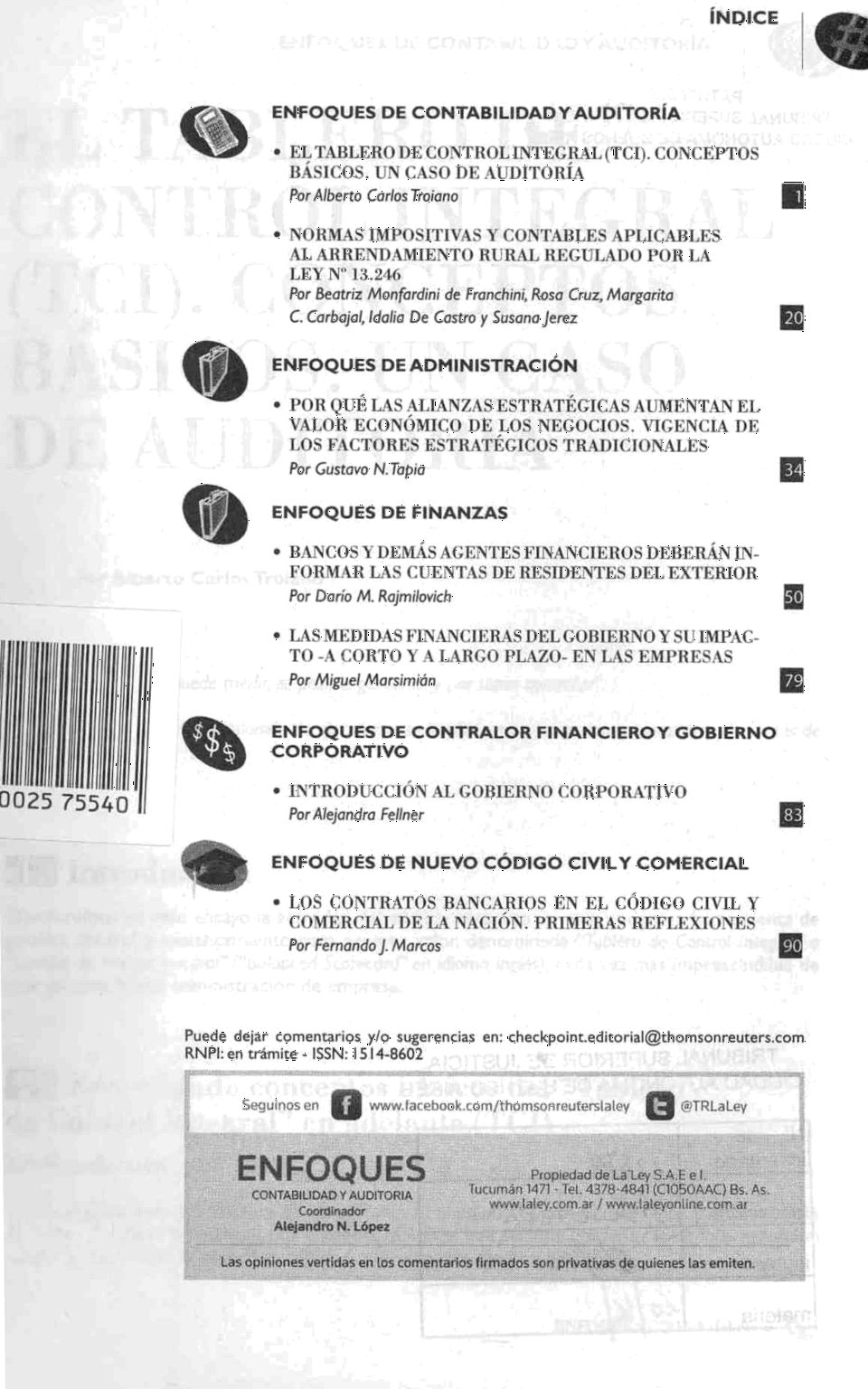 Enfoques. -- no. 2 (feb. 2016). -- Buenos Aires : La Ley, impresión 2016. 109 p.; 25 cm.