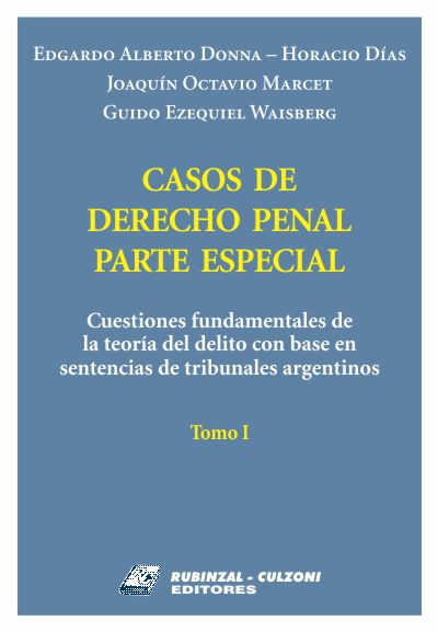 Casos de derecho penal parte especial: cuestiones fundamentales de la teoría del delito con base en sentencias de tribunales argentinos, tomo I / Edgardo Alberto Donna... [et al.]. -- Buenos Aires : Rubinzal - Culzoni, impresión 2020. 386 p.; 23 cm. -- (Casos de derecho penal parte especial: cuestiones fundamentales de la teoría del delito con base en sentencias de tribunales argentinos / Edgardo Alberto Donna... [et al.] ; 1) ISBN: 978-987-30-1501-4
