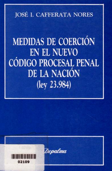 Cafferata Nores, José I. Medidas de coerción en el nuevo código procesal penal de la Nación / José I. Cafferata Nores. -- Buenos Aires : Depalma, 1992. ix, 90 p.; 23 cm.