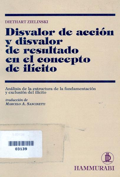 Zielinski, Diethart Disvalor de acción y disvalor de resultado en el concepto de ilícito: análisis de la estructura de la fundamentación y exclusión de ilícito / Diethart Zielinski ; Marcelo A. Sancinetti (1950-...), traducción. -- Buenos Aires : Hammurabi, 1990. xxiii, 408 p.; 23 cm.
