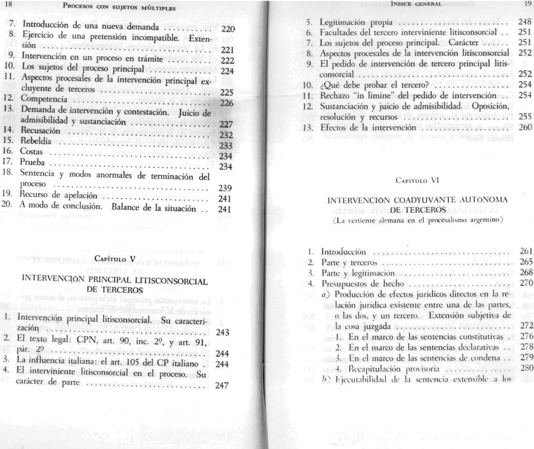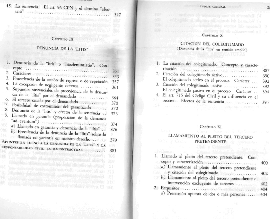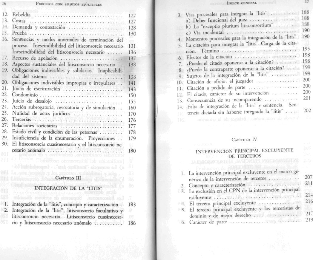 Contiene: [ litisconsorcio facultativo. Litisconsorcio necesario. Integración de la "litis". Intervención principal excluyente. Intervención principal litisconsorcial. Intervención coadyuvante autónoma. Intervención coadyuvante simple. Intervención obligada de terceros. Denuncia de la "litis". Citación del colegitimado. Llamamiento al pleito del tercero pretendiente. Indicación del poseedor mediato] ISBN: 950-9714-03-8