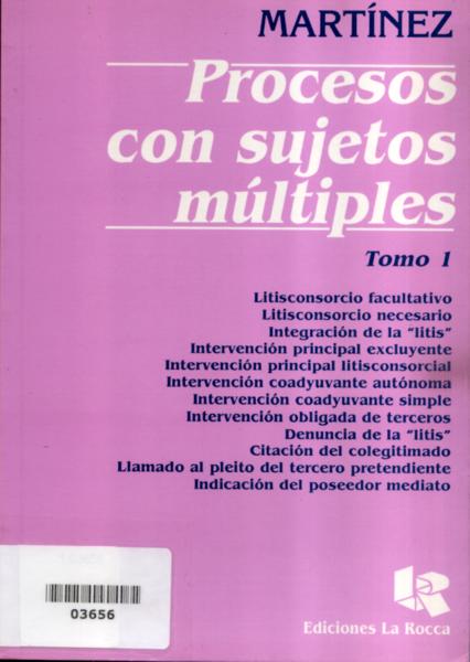 Martínez, Hernán J. Procesos con sujetos múltiples: tomo 1 / Hernán J. Martínez. -- 1a. ed. reimp. -- Buenos Aires : La Rocca, 1994. 421 p. -- (Procesos con sujetos múltiples / Hernán J. Martínez ; 1)