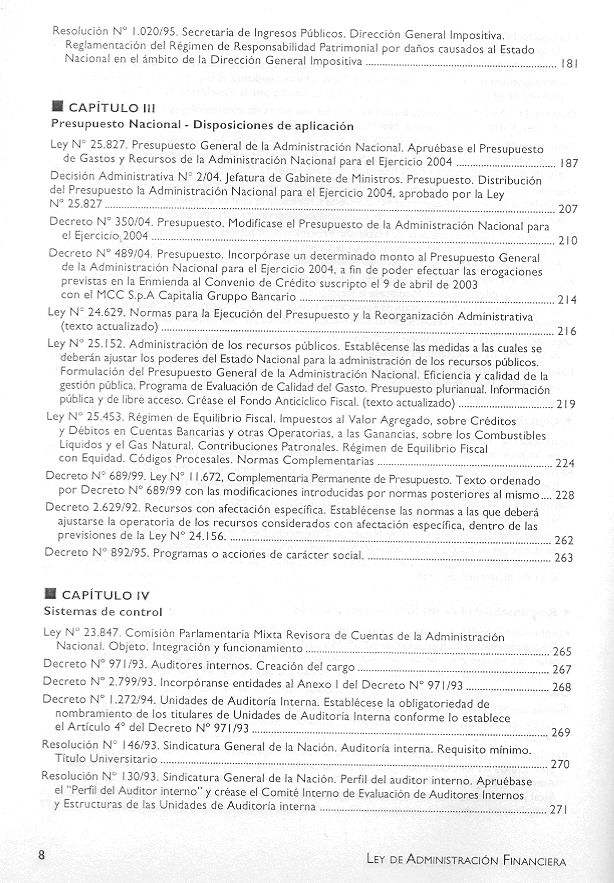 [Eds. anteriores publicadas como Revista Argentina del Régimen de la Administración Pública: ley de administración financiera y control de gestión]. [11a. ed. editada como una obra de hojas móviles que permite la actualización de su contenido]. ISBN: 987-20261-9-X