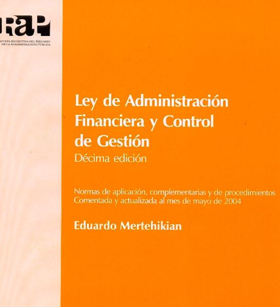 Mertehikian, Eduardo Ley de administración financiera y control de gestión: normas de aplicación complementarias y de procedimientos, comentada y actualizada al mes de mayo de 2004 / Eduardo Mertehikian. -- 10a. ed. -- Buenos Aires : RAP, impresión de 2004. 398 p.; 24 cm.