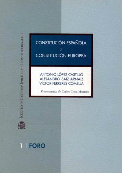 López Castillo, Antonio Constitución española y Constitución europea: análisis de la Declaración del Tribunal Constitucional (DCT 1/2004, de 13 de diciembre) / Antonio López Castillo ; Alejandro Sáiz Arnaiz ; Víctor Ferreres Comella ; Carlos Closa Montero, presentación. -- Madrid : Centro de Estudios Constitucionales, impresión de 2005. 191 p.; 21 cm. -- (Foro ; 1) ISBN: 84-259-1285-7