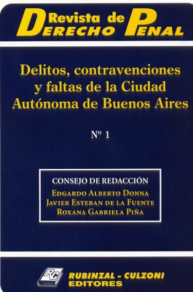 Revista de derecho penal: delitos, contravenciones y faltas de la Ciudad Autónoma de Buenos Aires. -- Vol. [supl.], no. 1. -- Buenos Aires : Rubinzal - Culzoni, impresión de 2004. 108 p.; 23 cm.