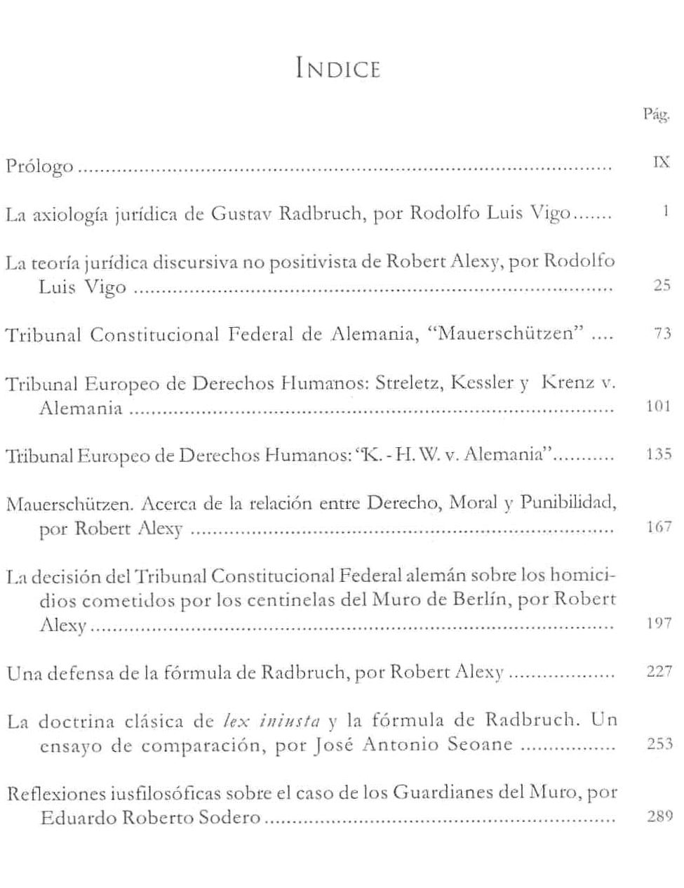 Vigo, Rodolfo Luis (1946-...) La injusticia extrema no es derecho (de Radbruch a Alexy) / Rodolfo Luis Vigo (1946-...). -- Buenos Aires : Universidad de Buenos Aires. Facultad de Derecho ; La Ley, c2004. ix, 326 p.; 24 cm. ISBN: 987-03-0361-7