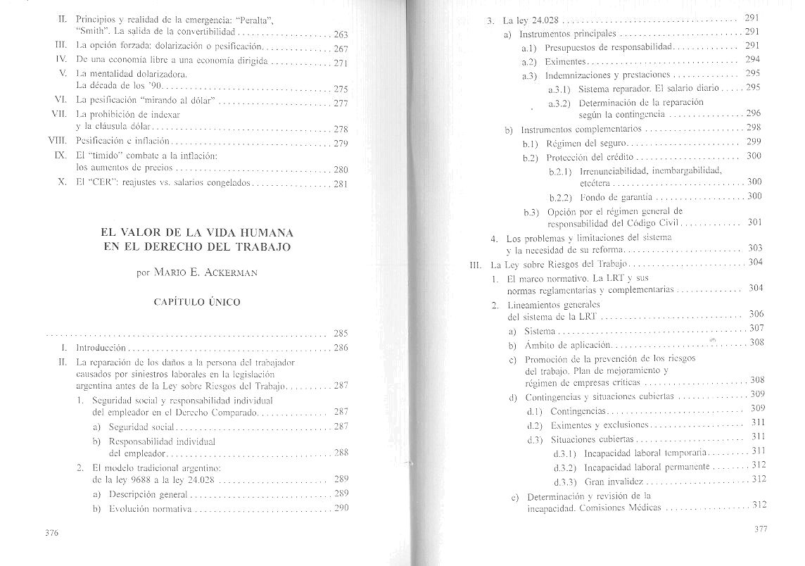 [Incluye capítulo de Mario E. Ackerman, "El valor de la vida humana en el derecho del trabajo"]. Bibliografía: p. 355-370. ISBN: 950-727-394-8