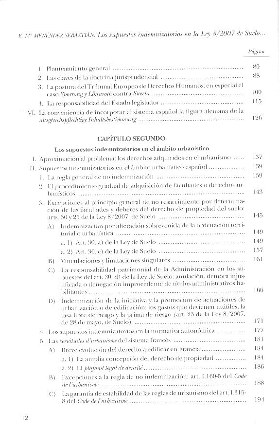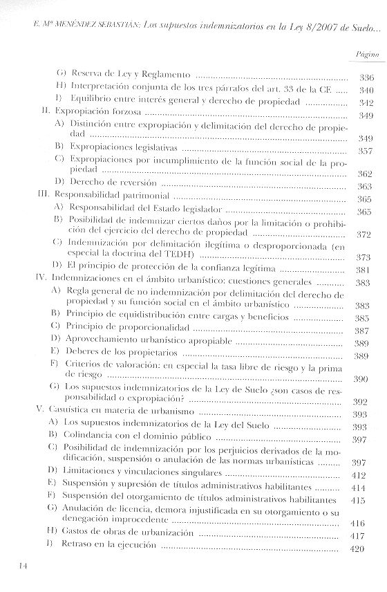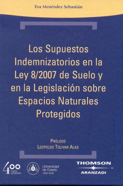 Menéndez Sebastián, Eva María Los supuestos indemnizatorios en la Ley 8/2007 de suelo y en la legislación sobre espacios naturales protegidos / Eva María Menéndez Sebastián ; Leopoldo Tolivar Alas, pról. -- Navarra : Thomson Aranzadi ; Universidad de Oviedo, 2007. 445 p.; 25 cm.