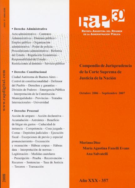 Revista Argentina del Régimen de la Administración Pública. -- Vol. 30, no. 357 (jun. 2008). -- Buenos Aires : RAP, 2008. 239 p.; 24 cm.