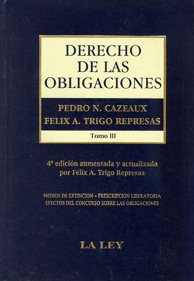 Cazeaux, Pedro Néstor Derecho de las obligaciones: tomo III / Pedro N. Cazeaux, Félix A. Trigo Represas; redactado y actualizado por Félix A. Trigo Represas. -- 4a. ed., aum. y actualizada. -- Buenos Aires : La Ley, 2010. xxxii, 706 p.; 24 cm. -- (Derecho de las obligaciones / Pedro Néstor Cazeaux ; 3)
