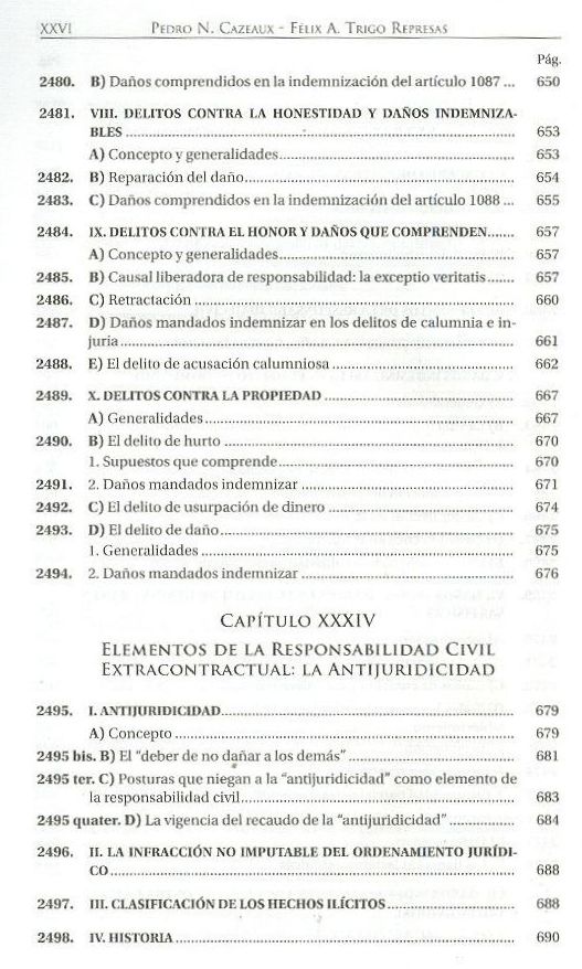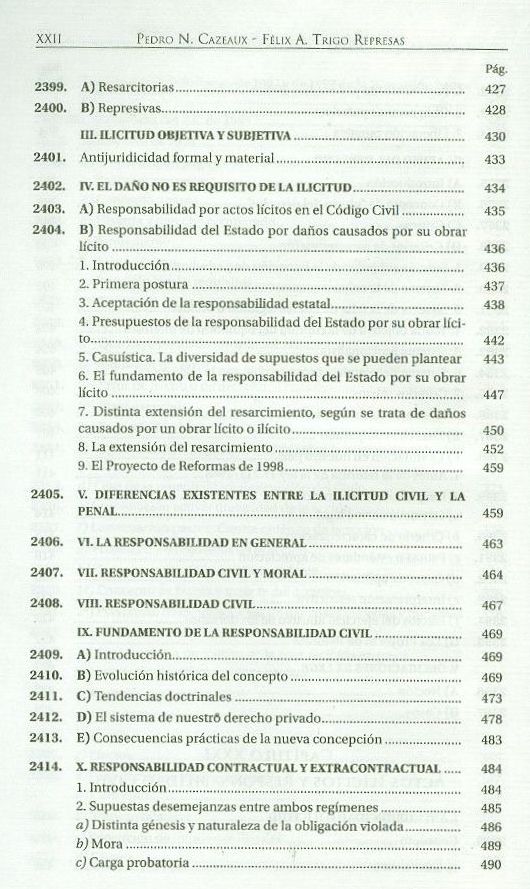 1. OBLIGACIONES (DERECHO) (LE) 2. ACTOS ILICITOS (LE) 3. Responsabilidad civil (JURI) 4. RESPONSABILIDAD CIVIL (LE) 5. Responsabilidad extracontractual (JURI) I. Trigo Represas, Félix Alberto (1928-2016)