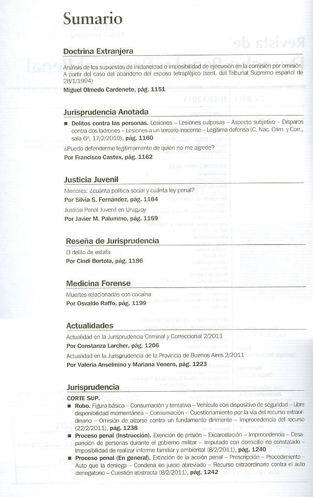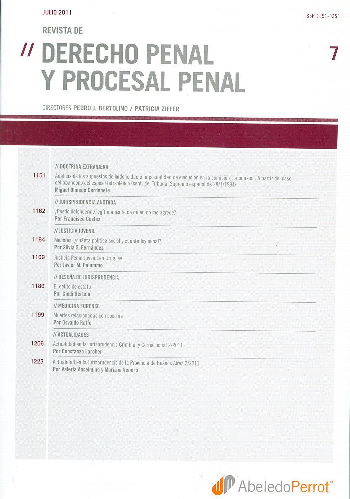 [Revista de derecho penal y procesal penal] Revista de derecho penal y procesal penal. -- Vol. 7 (jul. 2011). -- Buenos Aires : Abeledo-Perrot, [2011]. 1151-1332, xxii p.; 27 cm.