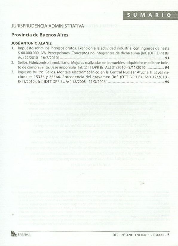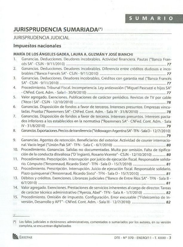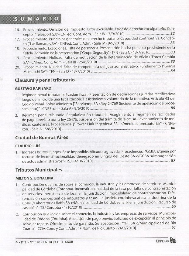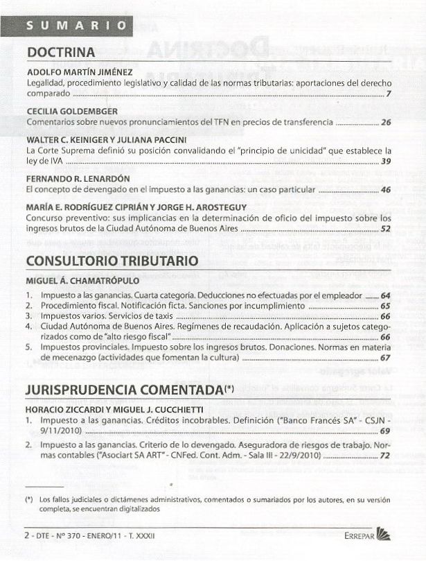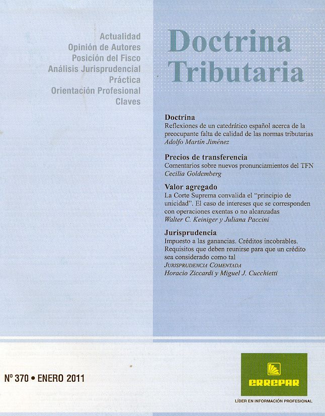 Doctrina tributaria. -- Año 29, Vol. 32, no. 370 (ene. 2011). -- Buenos Aires : Errepar, impresión 2011. 96 p.; 23 cm.
