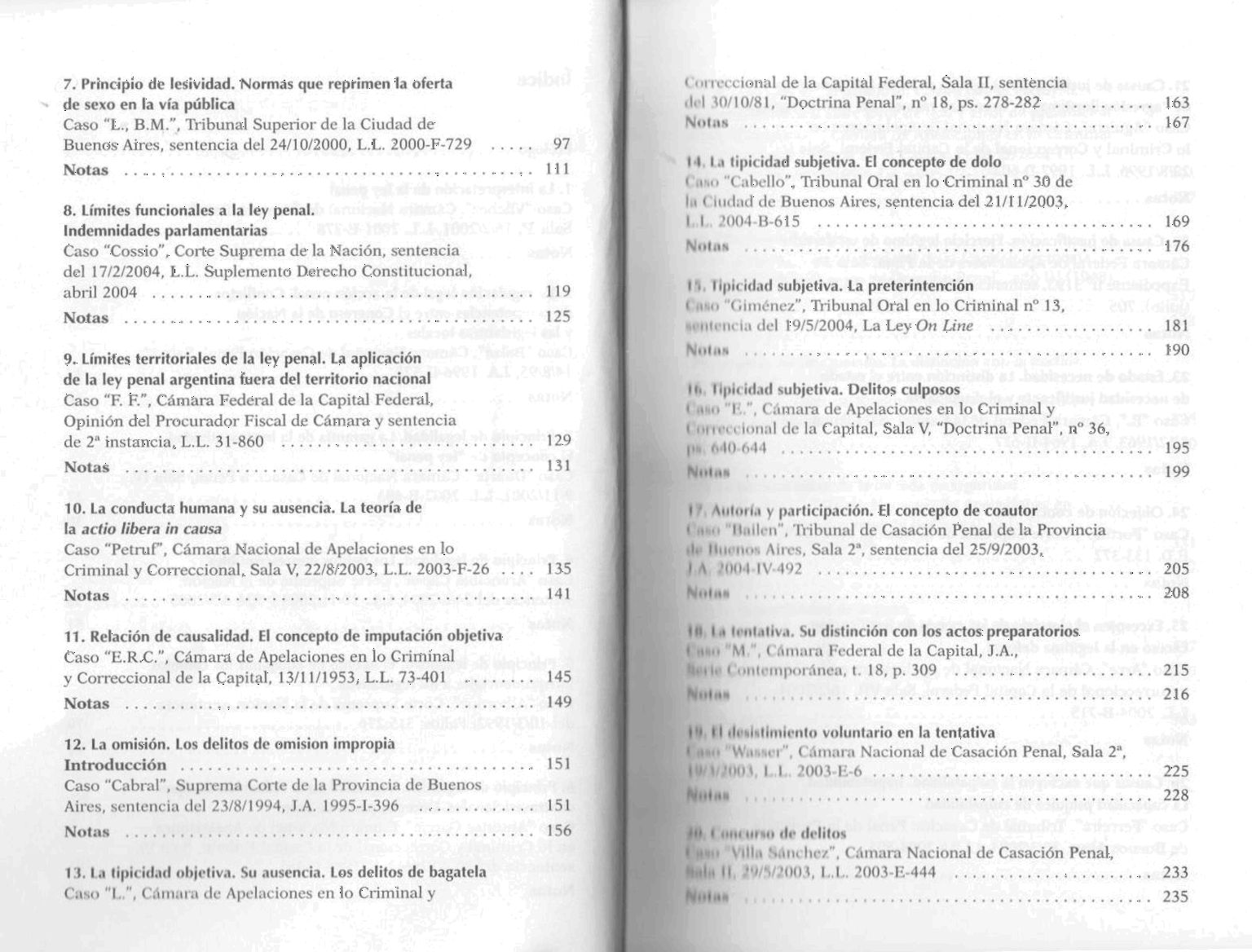 1. DERECHO PENAL (LE) 2. Jurisprudencia (JURI) 3. JURISPRUDENCIA (LE) 4. INTERPRETACIÓN DE LA LEY (SAIJ) 5. COMPETENCIA (DERECHO) (LE) 6. Principio de legalidad (JURI) 7. Irretroactividad de la ley (JURI) 8. IMPRESCRIPTIBILIDAD DE LA ACCIÓN PENAL (SAIJ) 9. CONTRAVENCIONES (DERECHO PENAL) (LE) 10. Derecho de autor (JURI) 11. LESIVIDAD (SAIJ) 12. PROSTITUCIÓN (LE) 13. COMERCIO SEXUAL (LE) 14. INMUNIDADES PARLAMENTARIAS (SAIJ) 15. Jurisdicción (JURI) 16. JURISDICCIÓN (LE) 17. ACTIO LIBERAE IN CAUSA (SAIJ) 18. CAUSALIDAD (LE) 19. DELITOS POR OMISION (LE) 20. TIPICIDAD (SAIJ) 21. DOLO (DERECHO PENAL) (LE) 22. PRETERINTENCIÓN (SAIJ) 23. DELITO CULPOSO (SAIJ) 24. AUTORÍA (SAIJ) 25. COAUTORÍA (SAIJ) 26. TENTATIVA (DERECHO PENAL) (LE) 27. DESISTIMIENTO VOLUNTARIO (SAIJ) 28. CONCURSO DE DELITOS (SAIJ) 29. LEGÍTIMA DEFENSA (LE) 30. JUSTIFICACIÓN (LE) 31. ESTADO DE NECESIDAD (LE) 32. OBJECIÓN DE CONCIENCIA (LE) 33. INIMPUTABILIDAD (SAIJ) 34. CULPABILIDAD (SAIJ) 35. ERROR (DERECHO) (LE) 36. OBEDIENCIA DEBIDA (SAIJ) 37. PENAS (LE) 38. MEDIDAS DE SEGURIDAD (SAIJ)