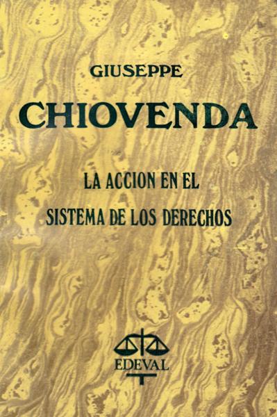 Chiovenda, Giuseppe (1872-1937) La acción en el sistema de los derechos / Giuseppe Chiovenda (1872-1937). -- Valparaíso : EDEVAL, 1992. 209 p. : il.; 19 cm. -- (Colección juristas perennes ; 10)