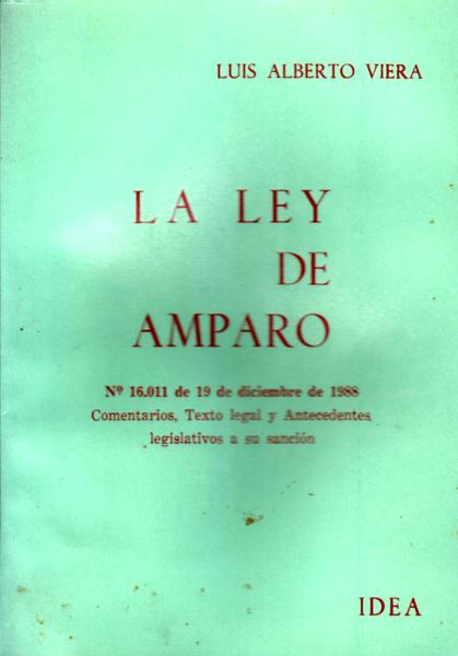 Viera, Luis Alberto La ley de amparo: n° 16.011 de 19 de diciembre de 1988, comentarios, texto legal y antecedentes legislativos a su sanción / Luis Alberto Viera. -- Montevideo : Ediciones IDEA, 1989. 90 p.; 20 cm.