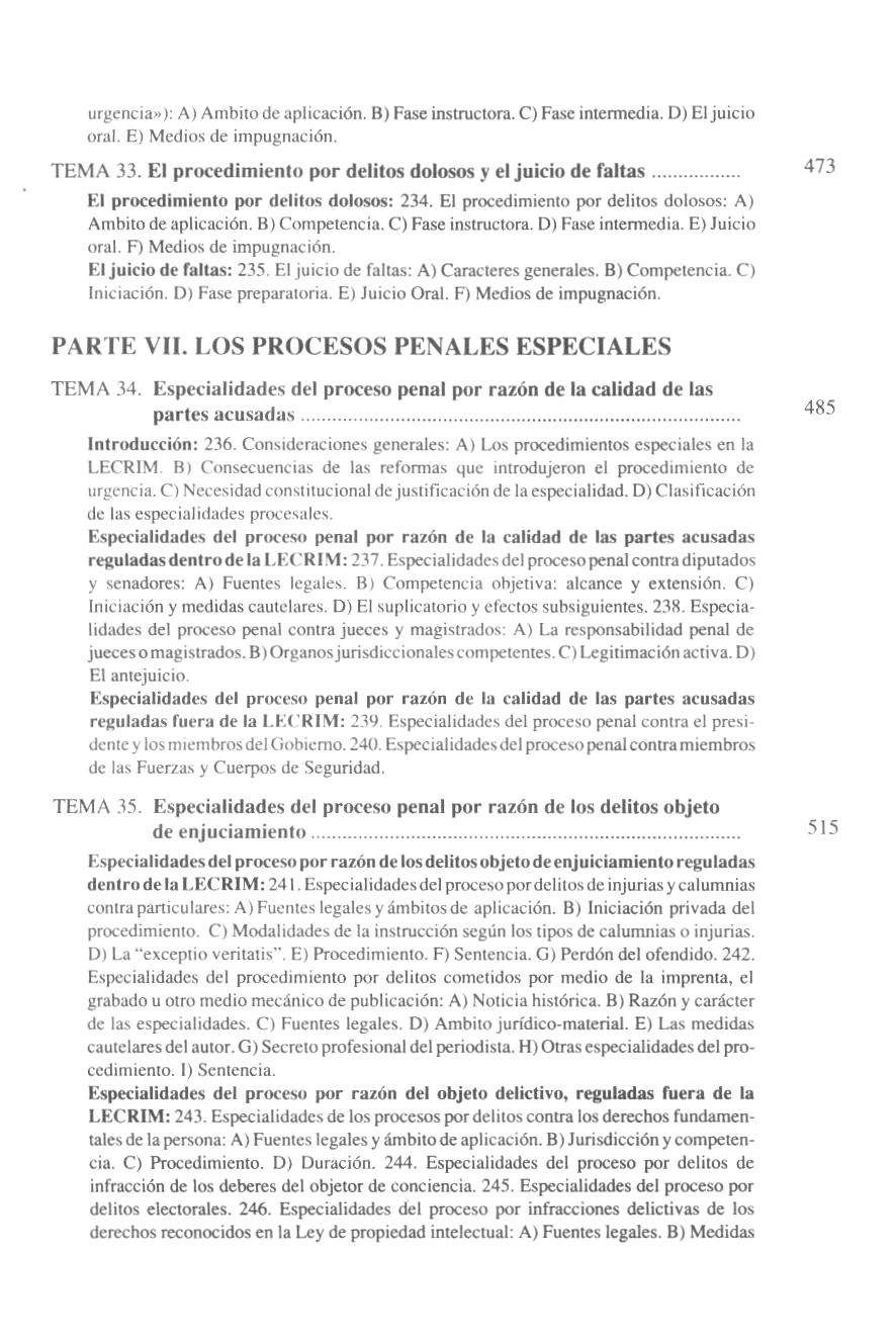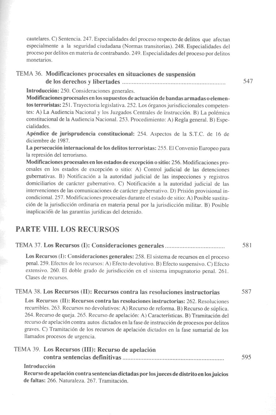 1. DERECHO PROCESAL (LE) 2. PROCEDIMIENTO PENAL (LE) 3. PROCESO PENAL (SAIJ) 4. ESPAÑA (LE) 5. Jurisdicción (JURI) 6. JURISDICCIÓN (LE) 7. PRINCIPIOS PROCESALES (SAIJ) 8. COMPETENCIA (DERECHO) (LE) 9. PARTES DEL PROCESO (SAIJ) 10. OBJETO DEL PROCESO (SAIJ) 11. INSTRUCCIÓN (SAIJ) 12. MEDIDAS CAUTELARES (SAIJ) 13. JUICIO ORAL (SAIJ) 14. JUICIO ORDINARIO (SAIJ) 15. PROCESOS ESPECIALES (SAIJ) 16. RECURSOS (DERECHO) (LE) 17. HABEAS CORPUS (LE) 18. EJECUCIÓN DE LA PENA (SAIJ) 19. COSTAS (DERECHO) (LE) 20. GRATUIDAD DEL PROCEDIMIENTO (SAIJ) 21. MEDIDAS DE SEGURIDAD (SAIJ) 22. PROCEDIMIENTO MILITAR (SAIJ) I. Sendra, Vicente Gimeno II. Moreno Catena, Víctor III. Almagro Nosete, José IV. Cortés Domínguez, Valentín