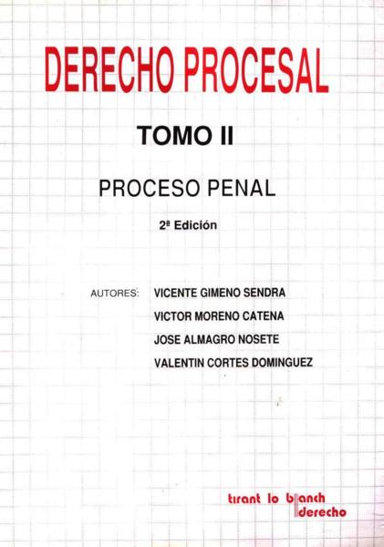 Derecho procesal: tomo II, el proceso penal / Vicente Gimeno Sendra... [et al.]. -- 2a. ed. -- Valencia : Tirant lo Blanch, 1988. [782] p.; 24 cm. -- (Derecho procesal / José Almagro Nosete... [et al.] ; 2)