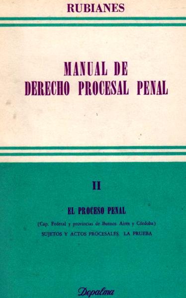 Rubianes, Carlos J. Manual de derecho procesal penal: II, el proceso penal / Carlos J. Rubianes. -- Buenos Aires : Depalma, 1977. xxiv, 410 p.; 23 cm. -- (Manual de derecho procesal penal / Carlos J. Rubianes ; 2)