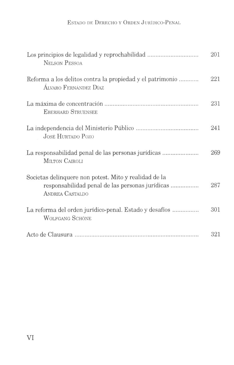 1. DERECHO PENAL (LE) 2. DERECHO PENAL (SAIJ) 3. Estado de derecho (JURI) 4. ESTADO DE DERECHO (LE) 5. SEGURIDAD JURÍDICA (SAIJ) 6. CONSTITUCIÓN NACIONAL (SAIJ) 7. ARGENTINA - CONSTITUCIÓN (LE) 8. Derecho constitucional (JURI) 9. DERECHO CONSTITUCIONAL (LE) 10. PROCEDIMIENTO PENAL (LE) 11. PROCESO PENAL (SAIJ) 12. EJECUCIÓN DE LA PENA (SAIJ) 13. POLÍTICA CRIMINAL (SAIJ) 14. Principio de legalidad (JURI) 15. PRINCIPIO DE LEGALIDAD (SAIJ) 16. DELITOS CONTRA LA PROPIEDAD (LE) 17. Ministerio público (JURI) 18. RESPONSABILIDAD PENAL (LE) 19. RESPONSABILIDAD PENAL (SAIJ) 20. RESPONSABILIDAD DE LAS PERSONAS JURÍDICAS (SAIJ) 21. REFORMA LEGISLATIVA (SAIJ) I. Schöne, Wolfgang, coordinador