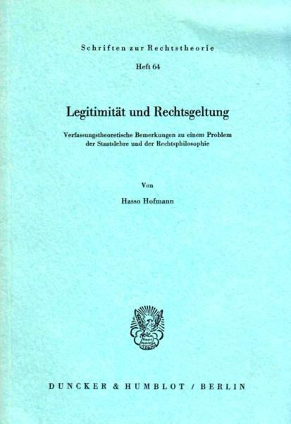 Hofmann, Hasso Legitimität und Rechtsgeltung: verfassungstheoretische Bemerkungen zu einem Problem der Staatslehre und der Rechtsphilosophie / Hasso Hofmann. -- Berlin : Duncker & Humblot, 1977. 103 p.; 23 cm. -- (Schriften zur Rechtstheorie ; 64)