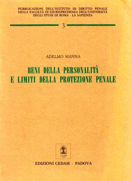 Manna, Adelmo Beni della personalità e limiti della protezione penale: le alternative di tutela / Adelmo Manna. -- Padova : CEDAM, 1989. xxx, 763 p.; 24 cm. -- (Pubblicazioni dell'Istituto di diritto penale della Facoltà di giurisprudenza dell'Università degli studi di Roma La Sapienza ; 3)