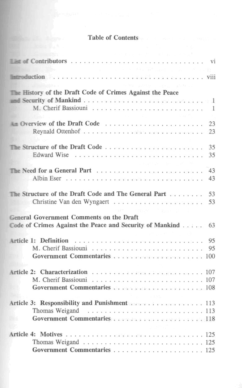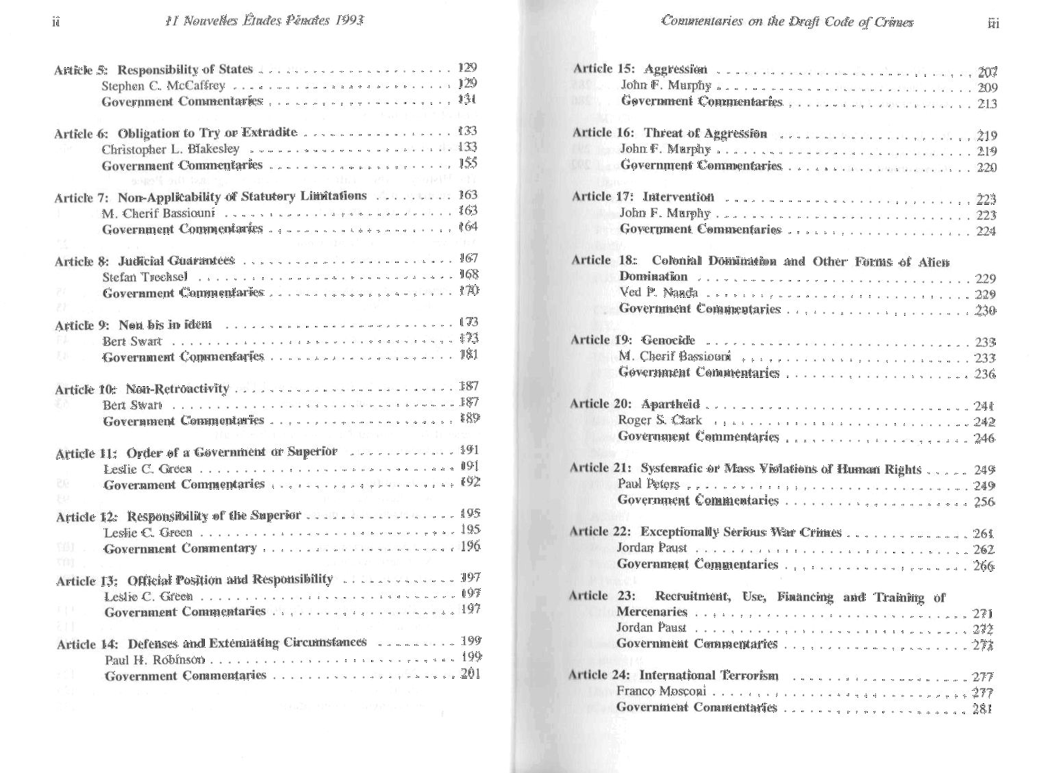 Commentaries on the international law commission's 1991 draft code of crimes against the peace and security of mankind / M. Cherif Bassiouni, ed. -- Toulouse : Association Internationale de Droit Pénal ; Érès, 1993. x, 296 p.; 22 cm. -- (Nouvelles études penales ; 11)