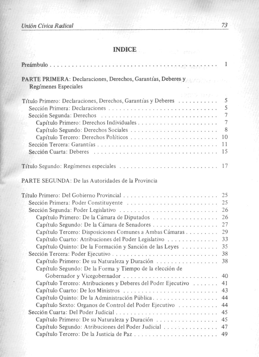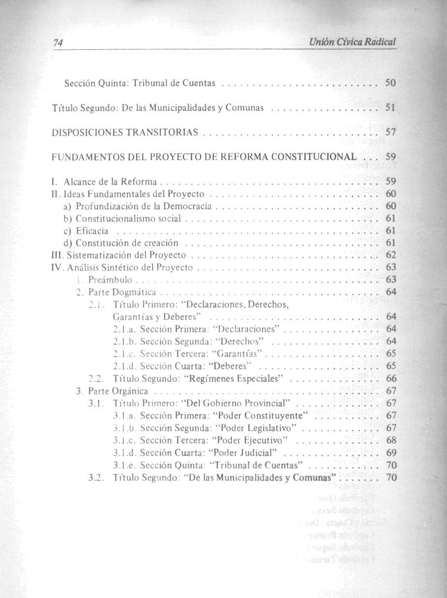 Córdoba (Argentina : Provincia). Poder Legislativo Proyecto de reforma constitucional / Convencionales constituyentes del bloque de la Unión Cívica Radical. -- Córdoba : Unión Cívica Radical, 1987. 74 p.; 22 cm.
