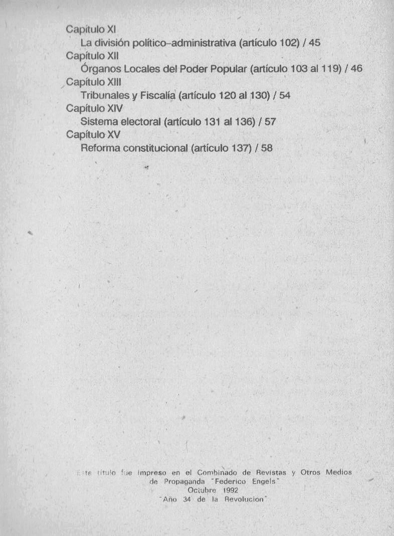 Cuba [Constitución] Constitución de la República de Cuba / Cuba. -- La Habana : Editora Política, 1992. 59 p.; 20 cm.